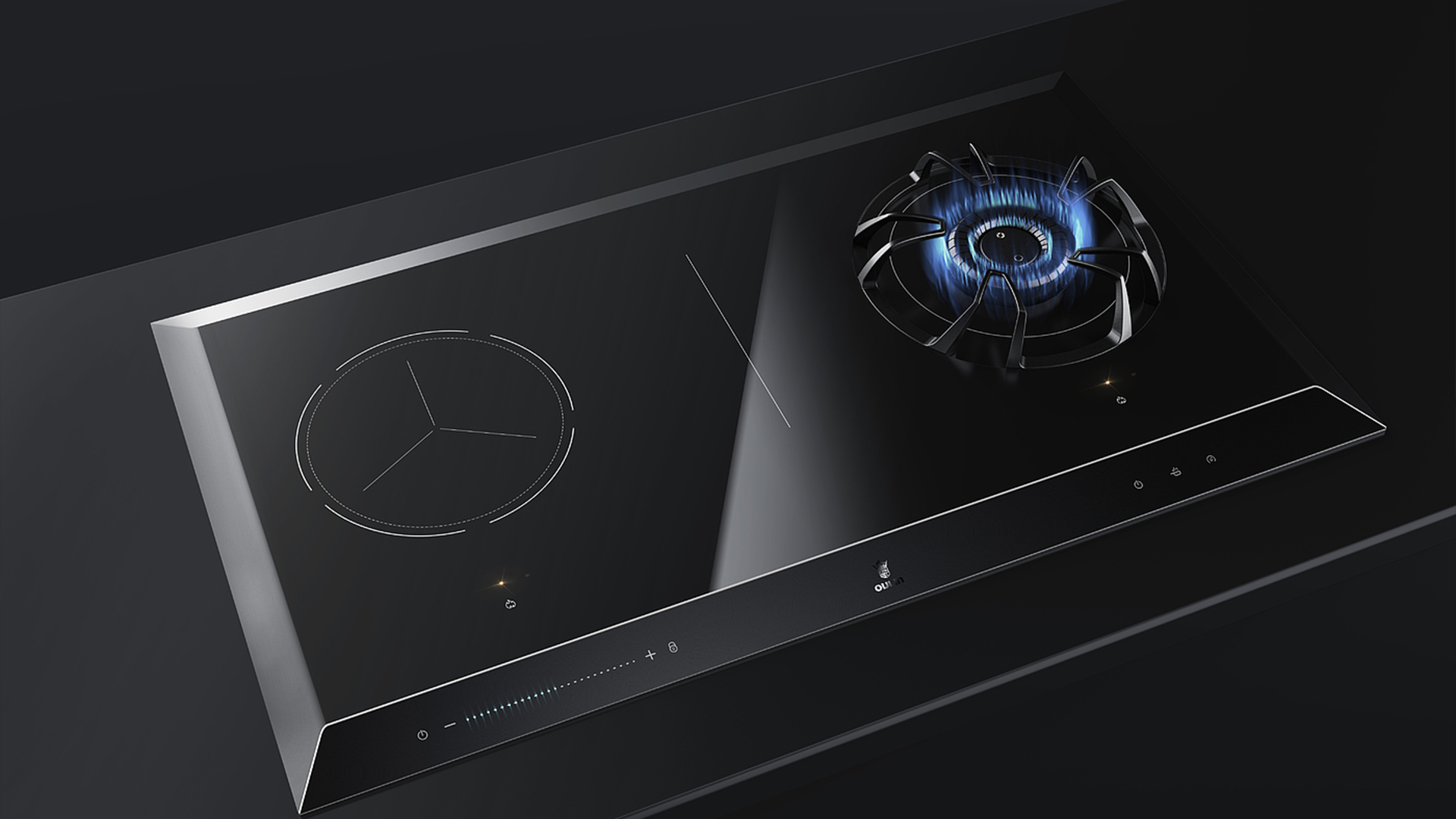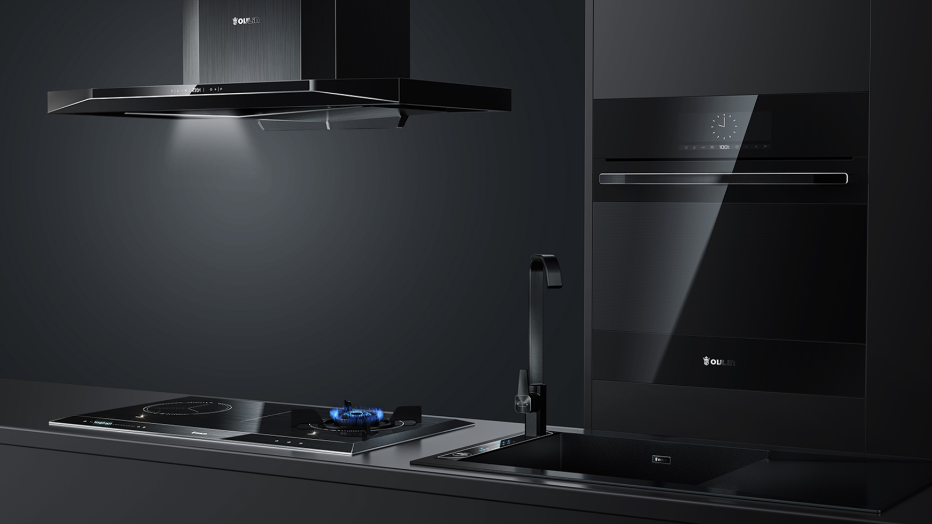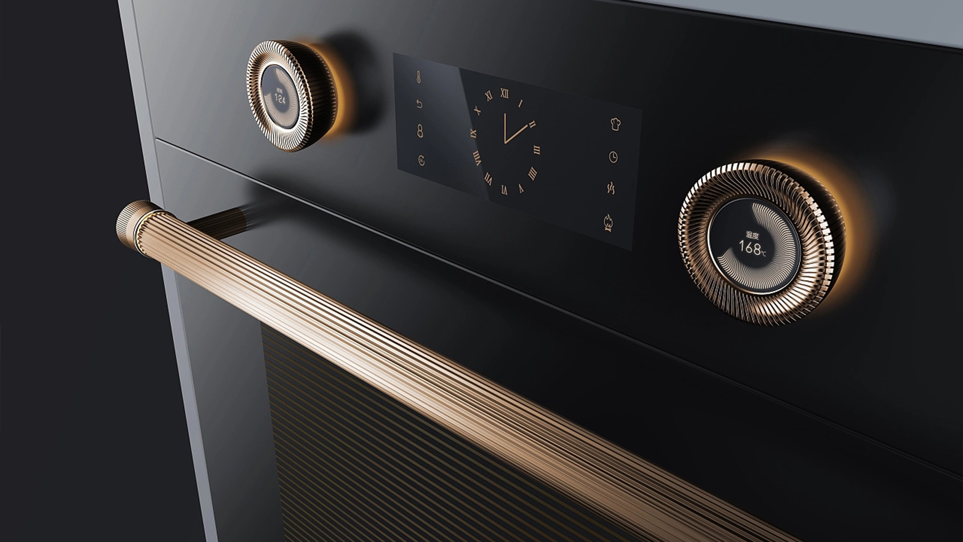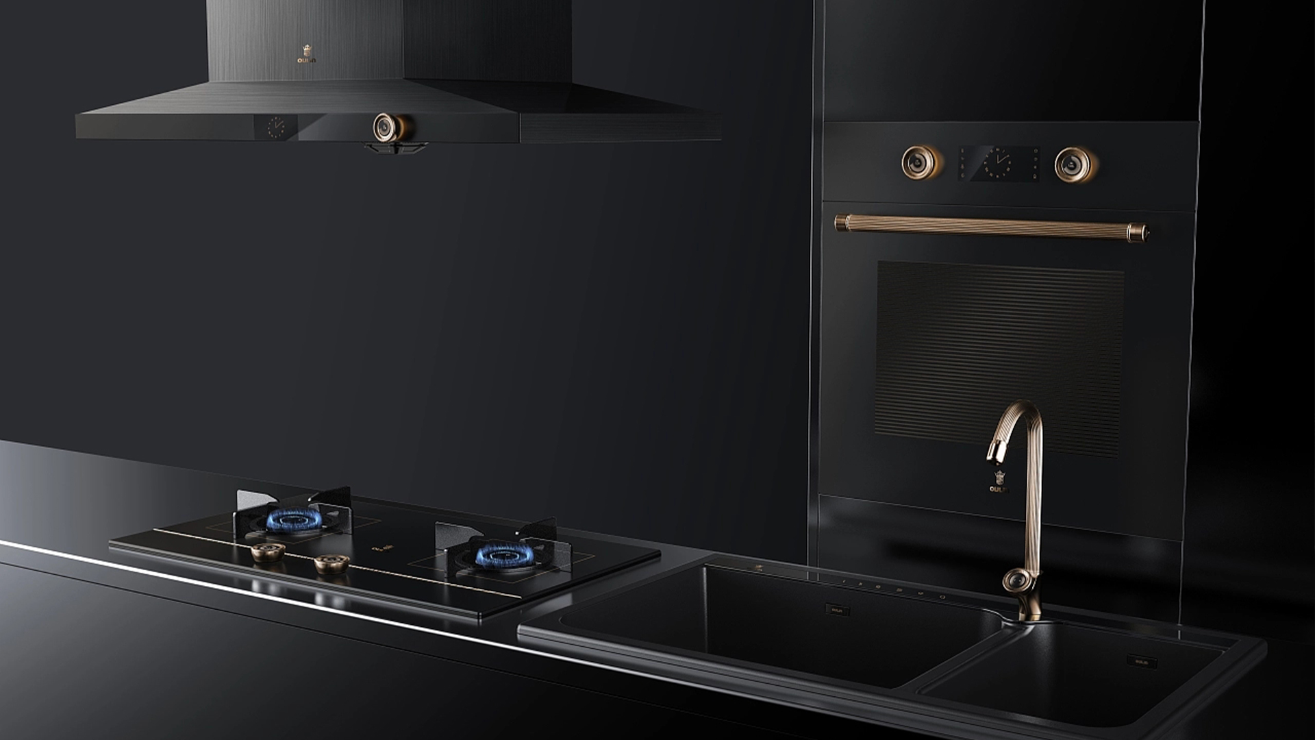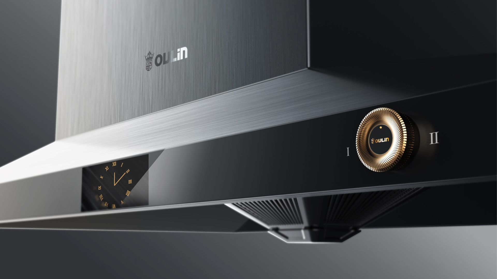 外觀上,該系列廚房電器外觀采用黑色鋼化玻璃,配上高亮銀色、玫瑰金的航空鋁材,按照美學(xué)比例進行幾何分割,給人高端價值的印象。油煙機內(nèi)部采用內(nèi)單層O型過濾網(wǎng),外平板側(cè)吸過濾,內(nèi)外結(jié)合油煙徹底分離,健康環(huán)保。精確的45度黃金斜角敞開設(shè)計,防止用戶意外磕碰。整體采用近距快吸式設(shè)計,徹底排除油煙。同時,我們擴大了金屬油杯的容量,減少倒油次數(shù),從根本上方便使用者清理。在燃氣灶設(shè)計上,我們大膽采用顯示屏+觸控調(diào)節(jié)按鍵設(shè)計,任意調(diào)控烹飪模式,為用戶帶來更智能的廚房體驗。