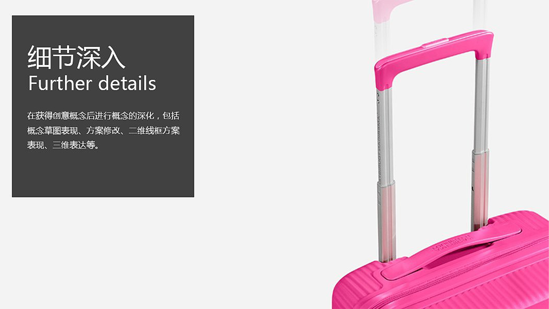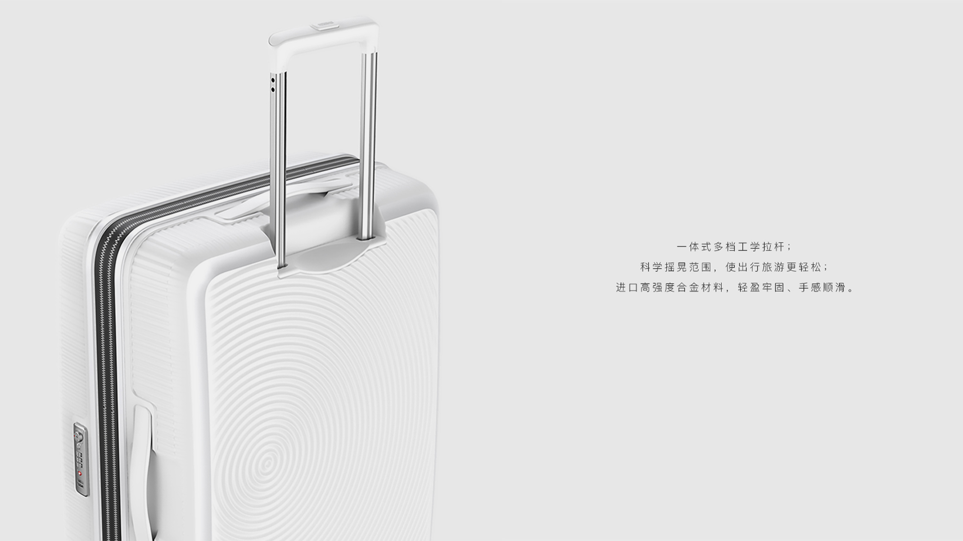 美旅AO8拉桿箱是一款為旅行者設(shè)計出行產(chǎn)品,整體的外觀造型柔和、簡潔。在箱體表面有立體旋渦設(shè)計,結(jié)合產(chǎn)品時尚個性的色彩搭配,就如同奪冠的關(guān)鍵一球,一躍成為人群中的焦點。產(chǎn)品設(shè)計采用PP材料的注塑工藝一體成型,外觀更加流暢舒適,同時也抗壓、耐刮花,手感舒適。背部采用一體式鋁合金拉桿,輕盈堅固,貼合手部的人機設(shè)計,增添了手部使用的舒適感。
