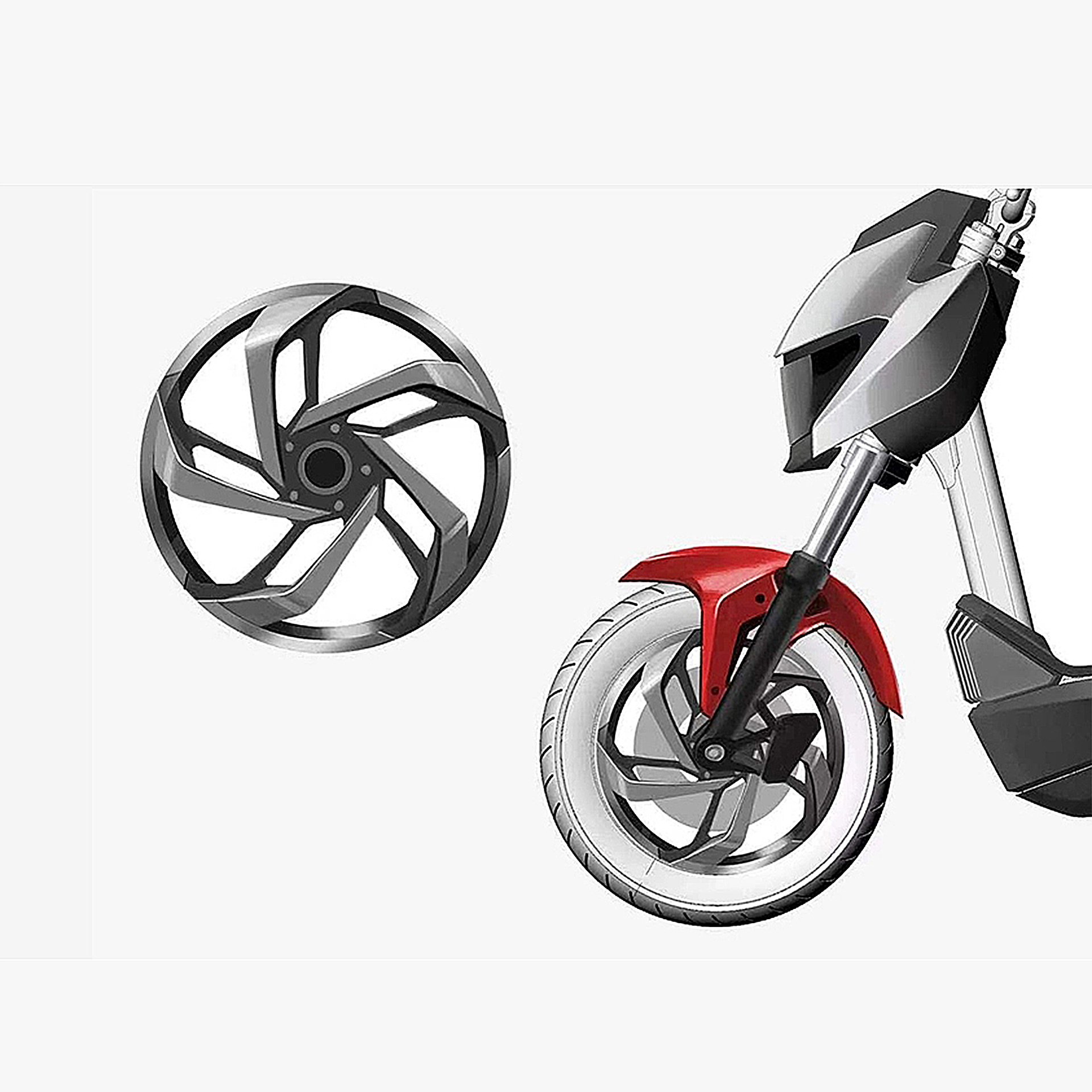 風(fēng)格探究二:智酷極客。運(yùn)用幾何要素分割,鏤空的形態(tài),使得整體看起更為輕便,營(yíng)造出電動(dòng)車(chē)更為時(shí)尚智酷的氣息。