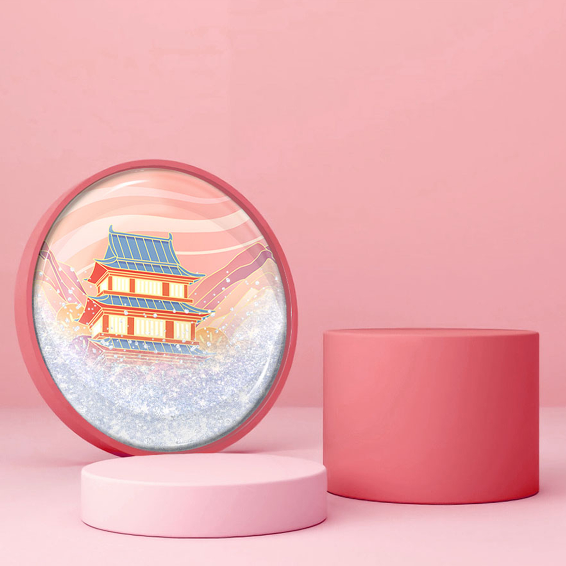 流沙杯墊系列:雨京園·流沙杯墊系列以商京園的地標建筑景陽樓為設計靈感,巧妙的將建筑元素做了畫中畫的處理,表達了美好祝福。