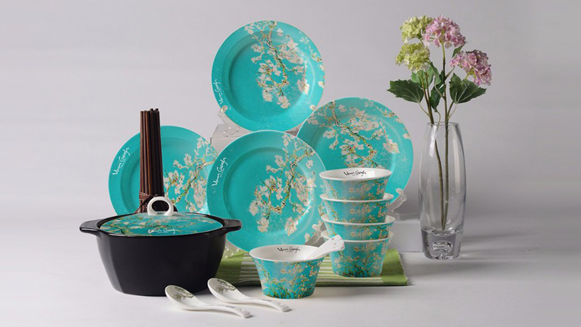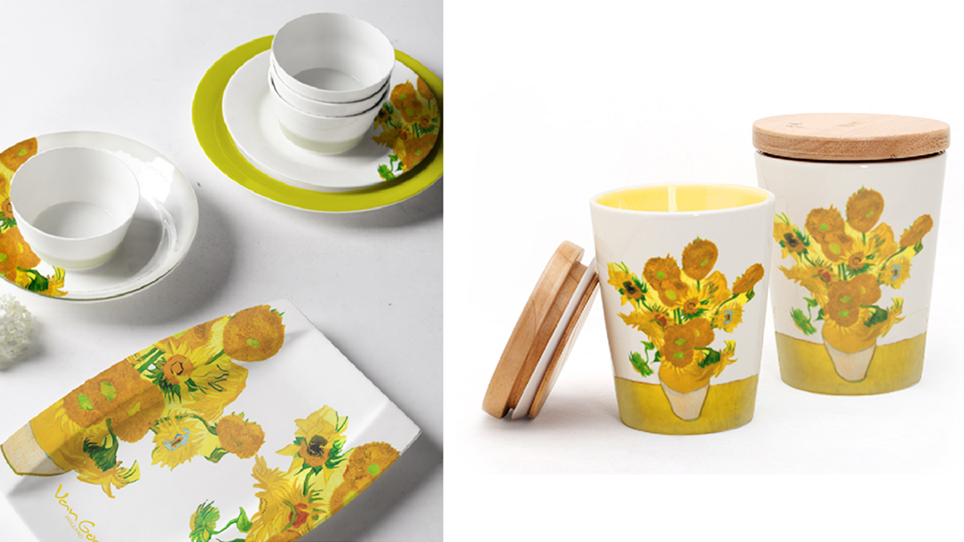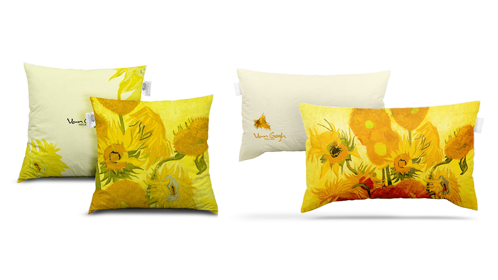 梵高作品的熱浪似乎沒(méi)有因?yàn)槟甏木眠h(yuǎn)而平息,每每提起,依然可以激起我們的熱情。木馬設(shè)計(jì)師們從梵高大量著名畫(huà)作中提取元素,選出八幅畫(huà)作作為主題:向日葵、盛開(kāi)的杏樹(shù)、鳶尾花、雷雨云下的麥田、麥田群鴉、花園中求偶的戀人、黃房子,以及自畫(huà)像。我們提煉八幅作品中的代表性元素,與產(chǎn)品完美融合。在設(shè)計(jì)過(guò)程中,設(shè)計(jì)師們嚴(yán)格按照版權(quán)要求,細(xì)致設(shè)計(jì)、多次調(diào)整所用圖案的色調(diào)、面積、排布等細(xì)節(jié)。最終獲得的產(chǎn)品涵蓋枕墊、餐具等家居飾品,以及多種數(shù)碼周邊產(chǎn)品。