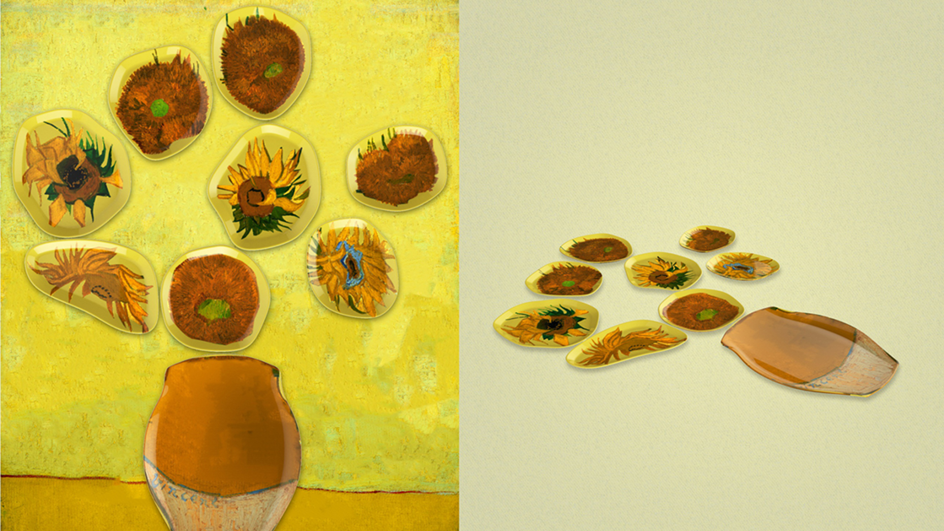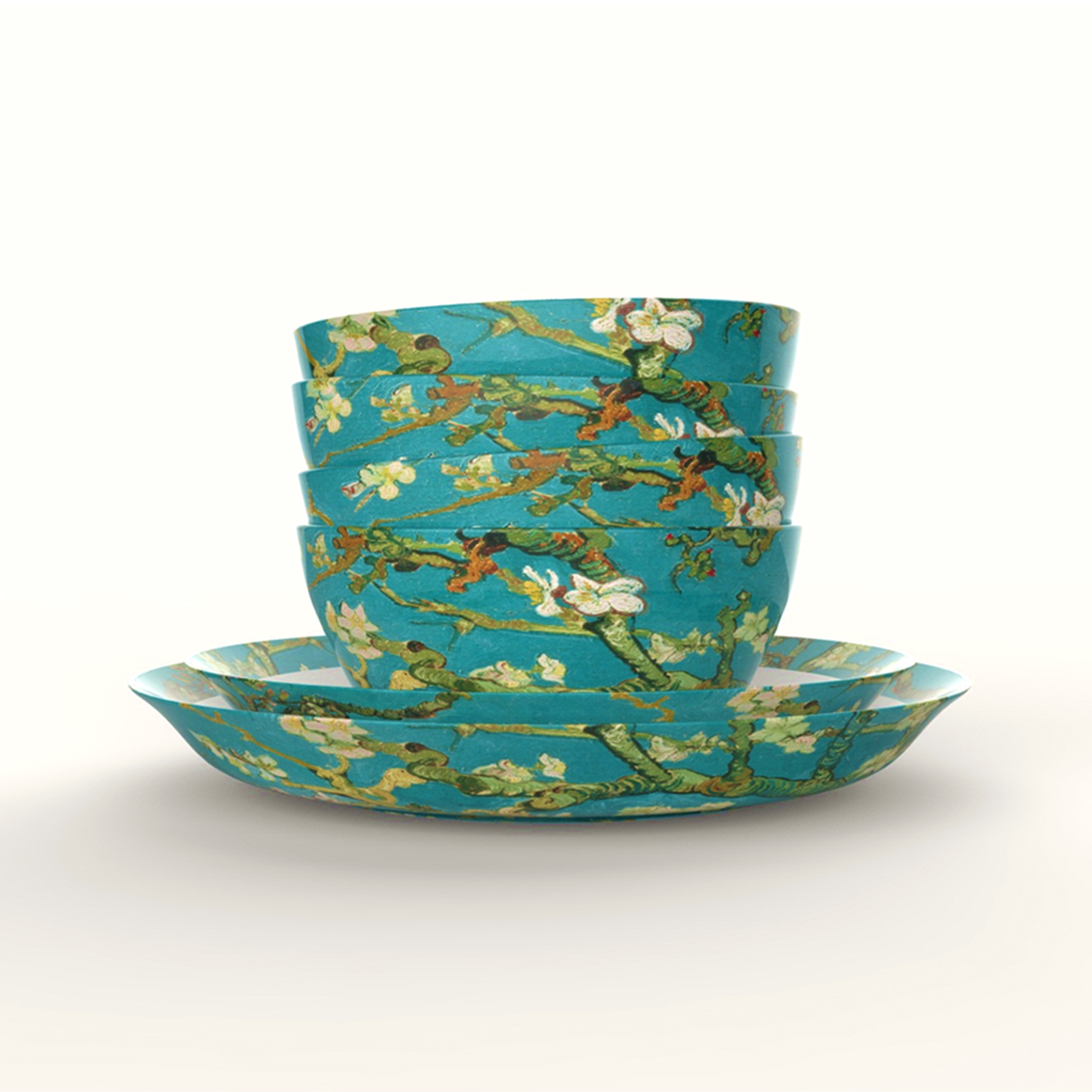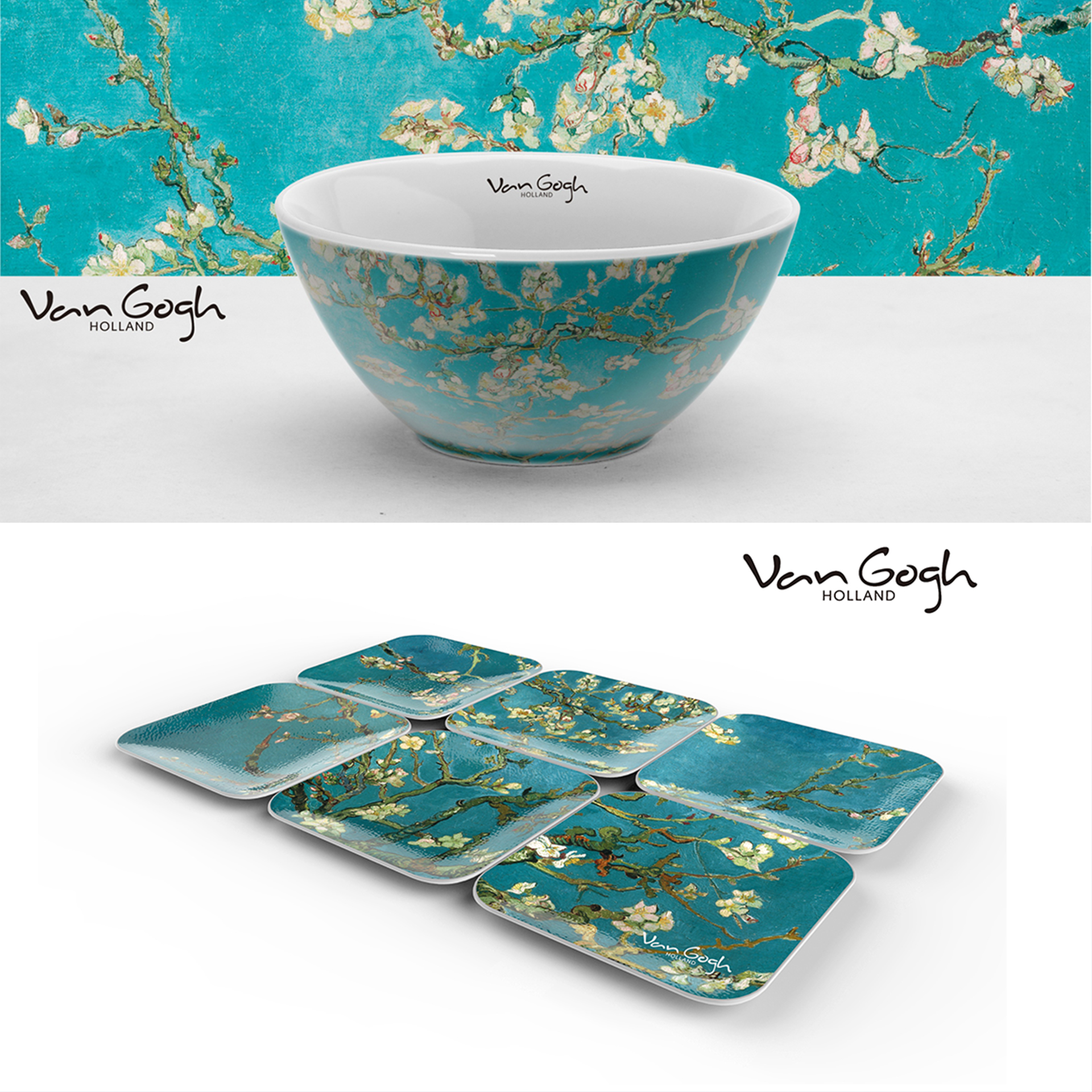 梵高作品的熱浪似乎沒(méi)有因?yàn)槟甏木眠h(yuǎn)而平息,每每提起,依然可以激起我們的熱情。木馬設(shè)計(jì)師們從梵高大量著名畫(huà)作中提取元素,選出八幅畫(huà)作作為主題:向日葵、盛開(kāi)的杏樹(shù)、鳶尾花、雷雨云下的麥田、麥田群鴉、花園中求偶的戀人、黃房子,以及自畫(huà)像。我們提煉八幅作品中的代表性元素,與產(chǎn)品完美融合。在設(shè)計(jì)過(guò)程中,設(shè)計(jì)師們嚴(yán)格按照版權(quán)要求,細(xì)致設(shè)計(jì)、多次調(diào)整所用圖案的色調(diào)、面積、排布等細(xì)節(jié)。最終獲得的產(chǎn)品涵蓋枕墊、餐具等家居飾品,以及多種數(shù)碼周邊產(chǎn)品。