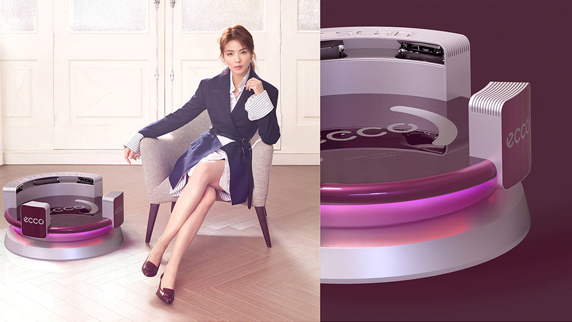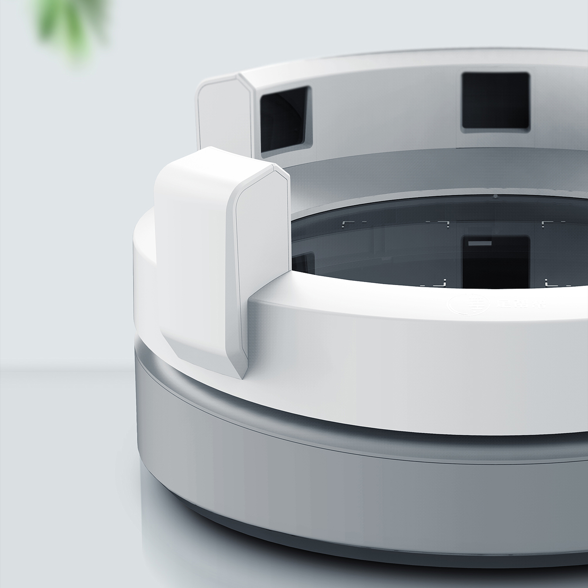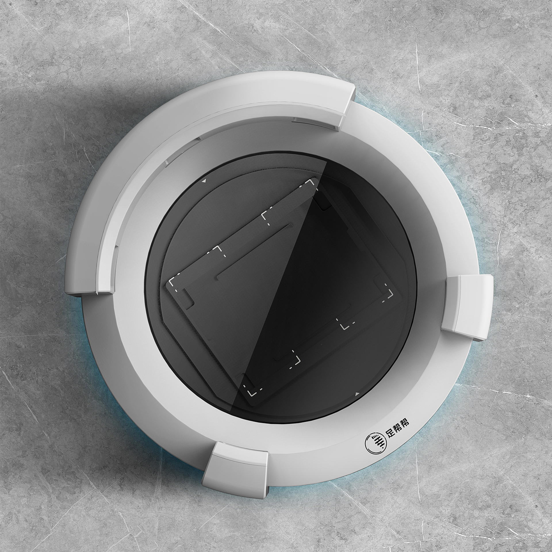在外觀設(shè)計中,最難的環(huán)書就是如何讓產(chǎn)品看起來比較小巧。由于硬件設(shè)備的關(guān)系,足掃產(chǎn)品的硬件部分都非常的厚重,甚至有點脾腫。設(shè)計通過不斷的努力,運用上下分色分割的方法,把產(chǎn)品整體切成了下兩個部分,并用一條優(yōu)美的曲線做了視覺上的改變,這樣反而讓人有種輕薄的錯覺。