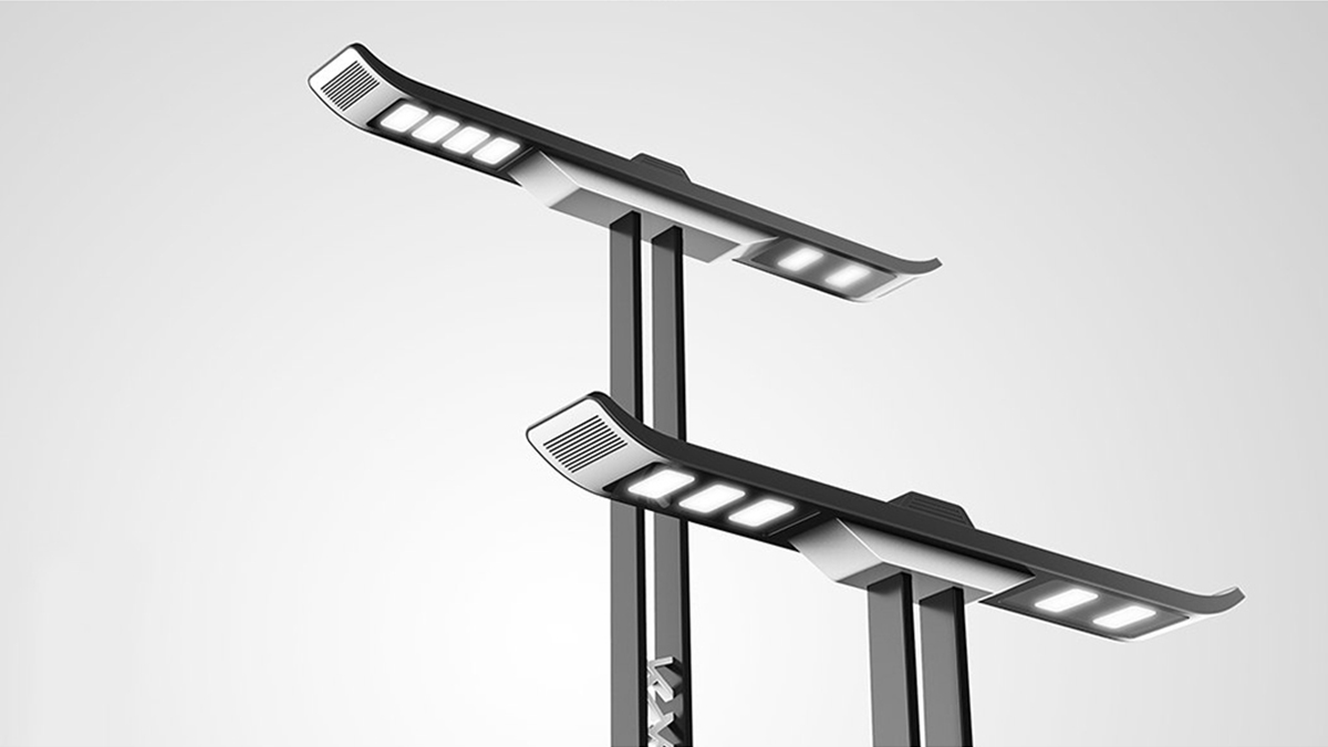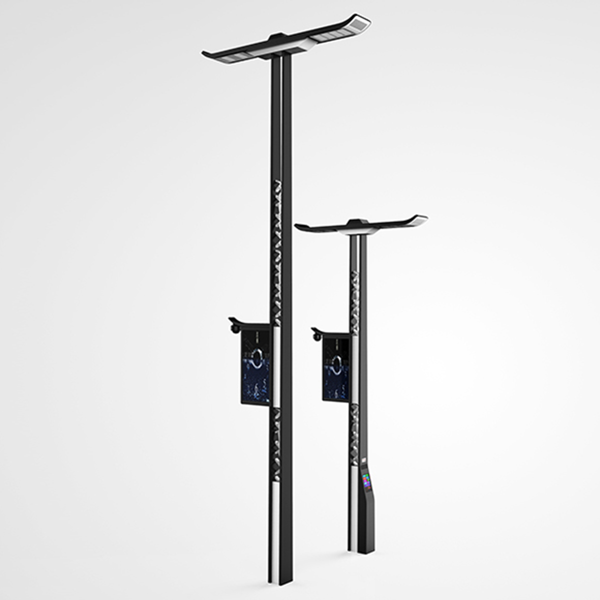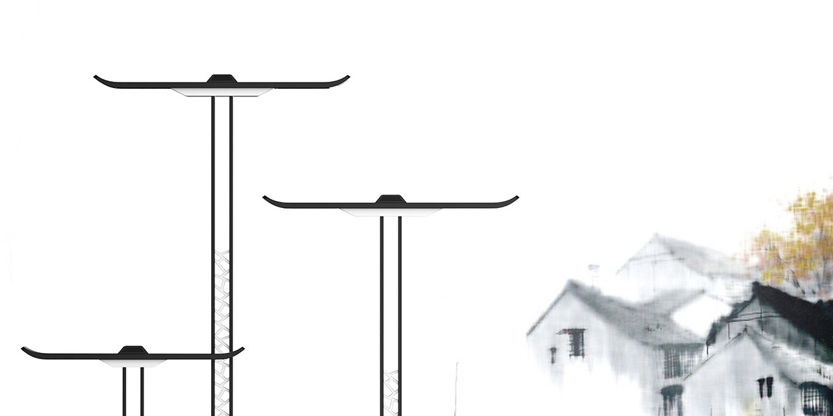 以江南獨特的建筑風格設計此款路燈,應用白墻黑瓦的色彩,將烏黑的瓦房上翹元素運用至路燈的照明位置,加以花窗式錯落有致的紋路樣式,讓此款路燈更具江南風,營造了獨特的江南韻味。