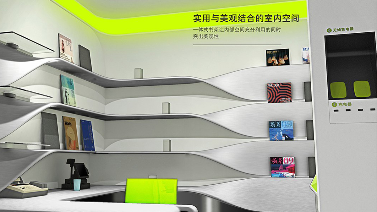 造型以現(xiàn)代簡約風(fēng)格為主,順應(yīng)現(xiàn)代市場和審美需求。簡潔的外觀、內(nèi)部流暢的曲線和燈光效果相呼應(yīng),凸顯產(chǎn)品的科技感同時又不顯得沉悶。多功能和模塊化設(shè)計更是人性化設(shè)計的主要體現(xiàn),由形式至意,從意到神韻,無不強(qiáng)調(diào)中國郵政的服務(wù)宗旨,以人為本。