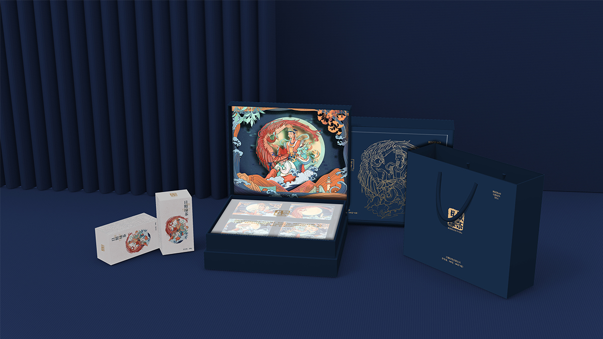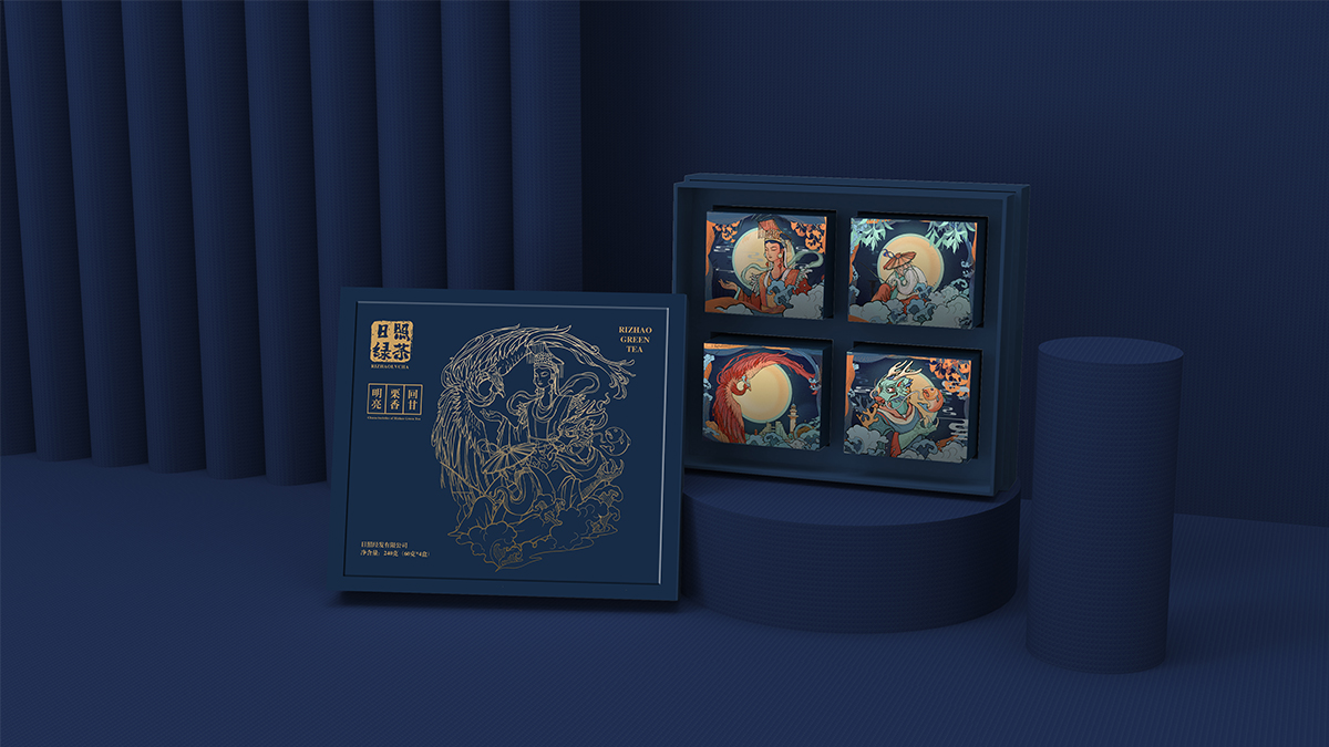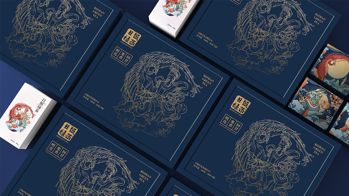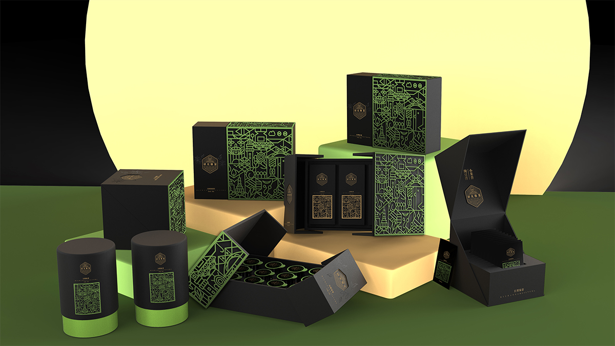 基于品牌風(fēng)格定位,我們以體現(xiàn)產(chǎn)品的高端、高品質(zhì)、文化屬性以及歷史厚重感為設(shè)計的主要方向。我們對于包裝應(yīng)用:色彩是保持品牌可視化的強大工具,在包裝用色上,我們主要以太陽文化、茶葉為原型,提取其中顏色,將黑、金、綠相結(jié)合,深沉、古樸、高雅,賦予品牌高端感,具有強烈的視覺沖擊力。