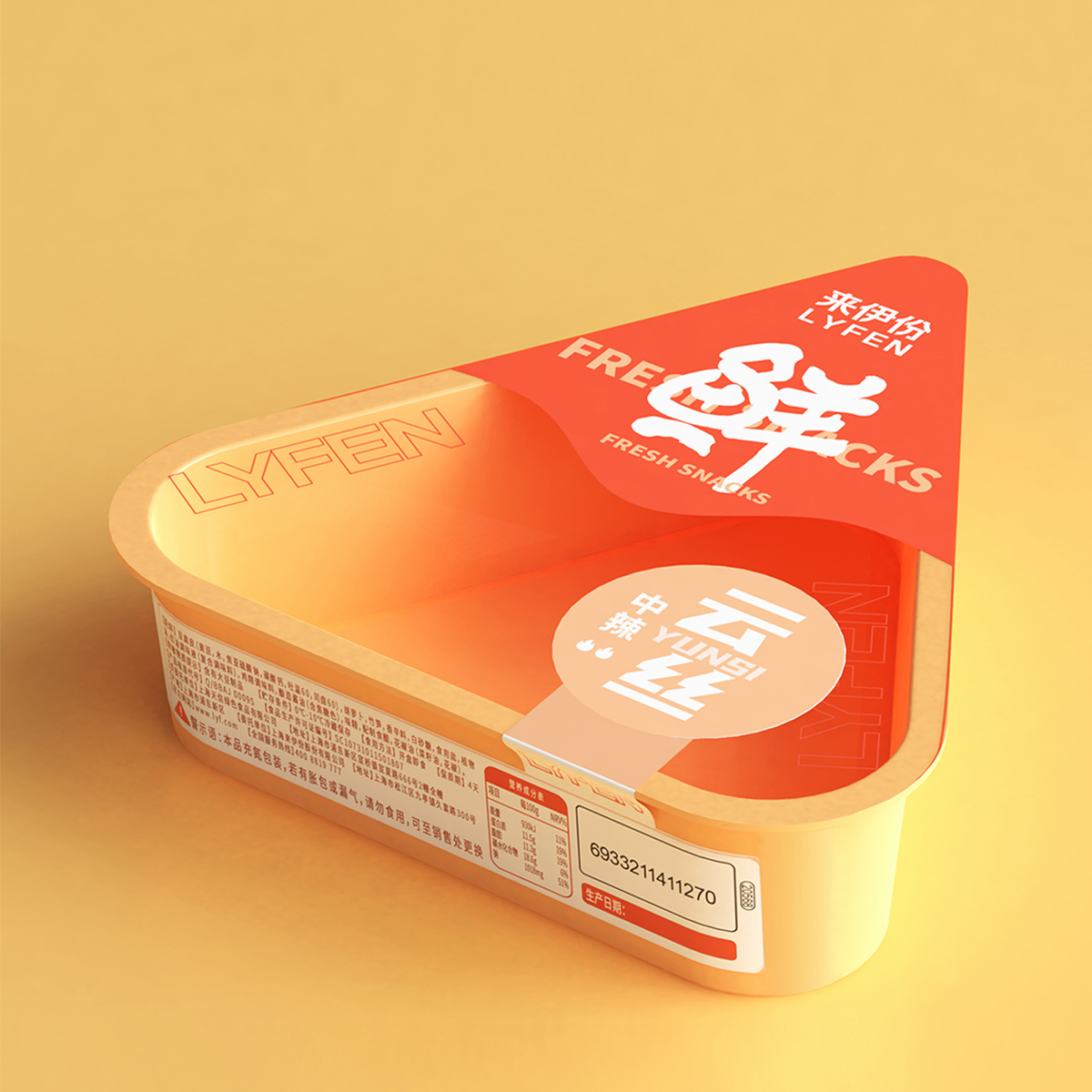 來伊份-鎖鮮裝:突出來伊份品牌核心“鮮”的通版印刷采用雙貼紙的形式,正面品類信息貼紙,提升用戶選購體驗。透明材質,新鮮看得見,突出來伊份品牌核心“鮮”的通版印刷。采用雙貼紙的形式,正面品類信息貼紙,提升用戶選購體驗。背面詳細信息貼紙,同時也作為底封,封住在盒子底部增加的手套包。通過增加盒子厚度和減小傾斜角度,使盒子能夠獨立站立,增加陳列美觀度和方便性。