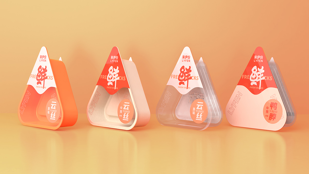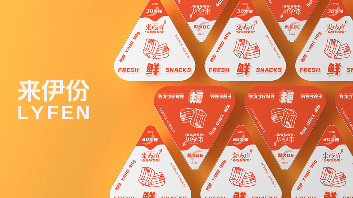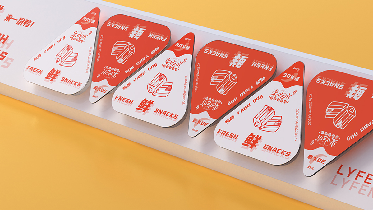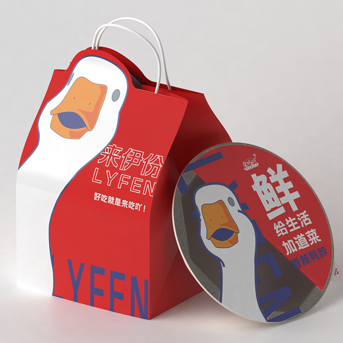 來伊份-給生活加道菜:八邊食盒,為味覺錦上添花。采用了中國傳統(tǒng)餐具錦盒的八邊造型,八也象征著八方來客,兼容并蓄,雅俗共賞的包容態(tài)度,與來伊份的品牌文化相符。底部貼紙內(nèi)附紙巾手套包,提升消費者食用體驗。活力鮮食,運用高飽和的明艷色彩和可愛年輕的鴨子形象提升視覺吸引力。