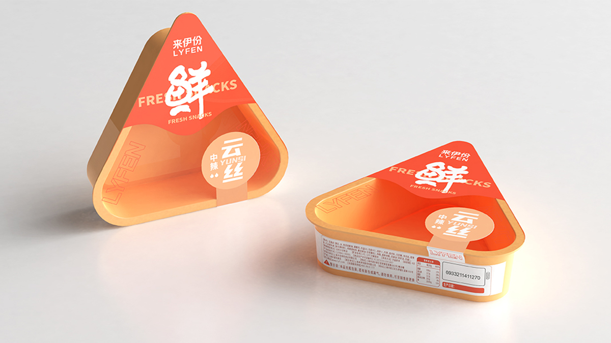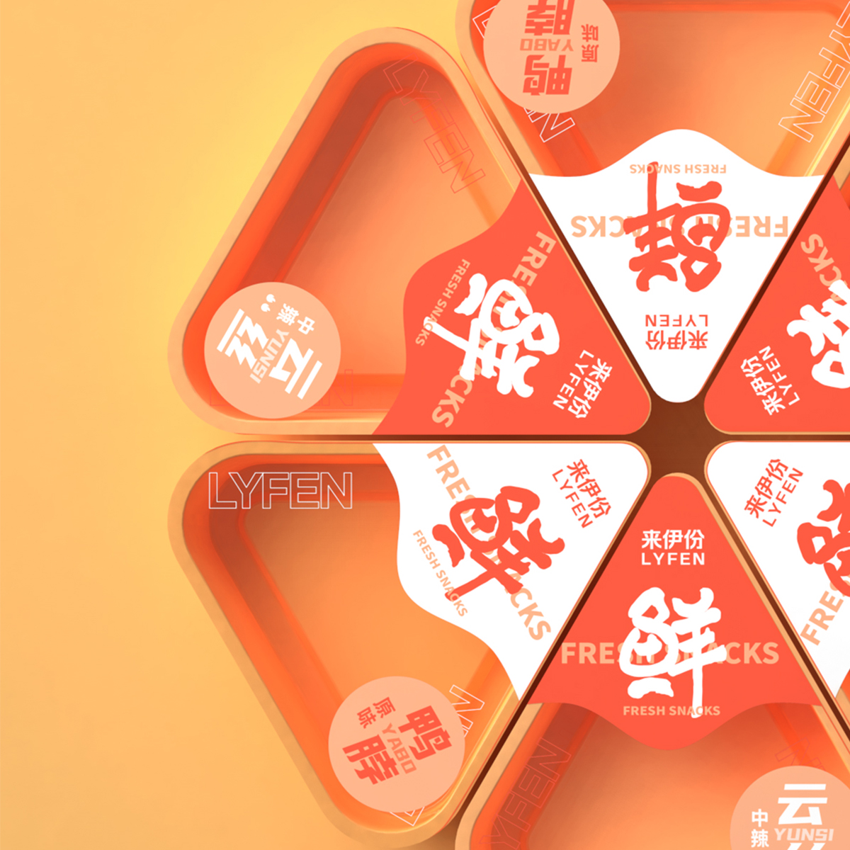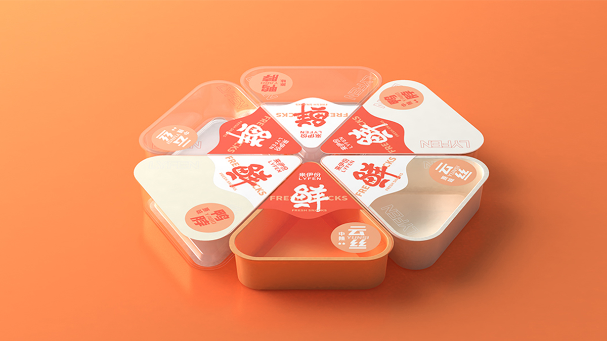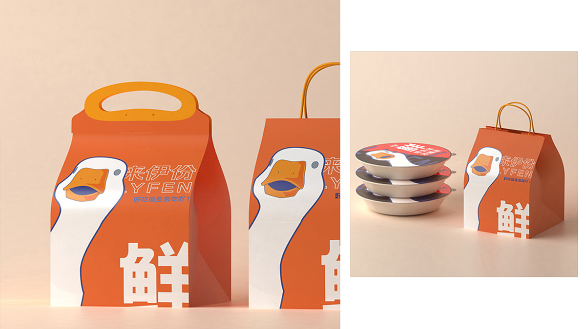 來伊份-給生活加道菜:八邊食盒,為味覺錦上添花。采用了中國傳統(tǒng)餐具錦盒的八邊造型,八也象征著八方來客,兼容并蓄,雅俗共賞的包容態(tài)度,與來伊份的品牌文化相符。底部貼紙內(nèi)附紙巾手套包,提升消費者食用體驗。活力鮮食,運用高飽和的明艷色彩和可愛年輕的鴨子形象提升視覺吸引力。