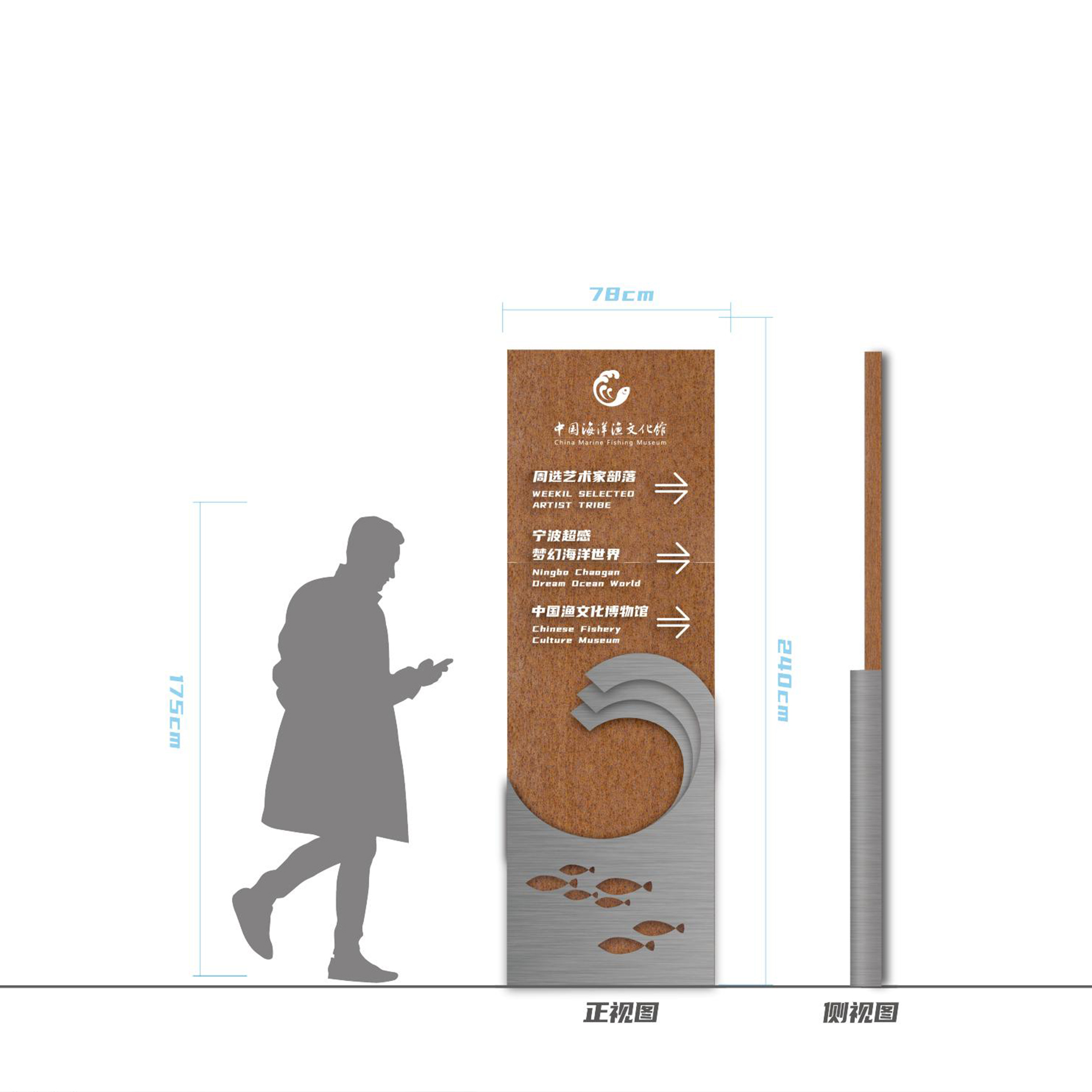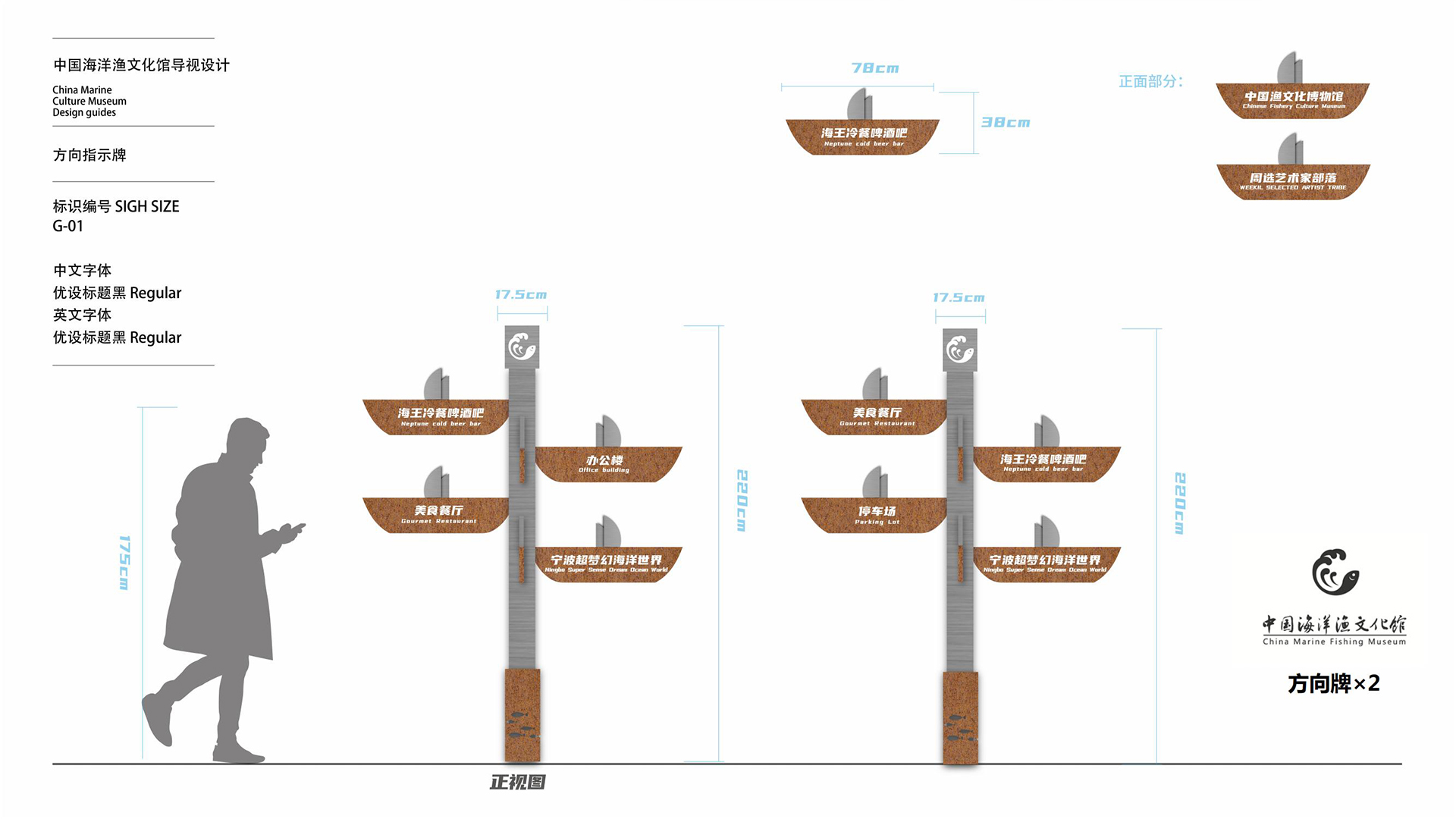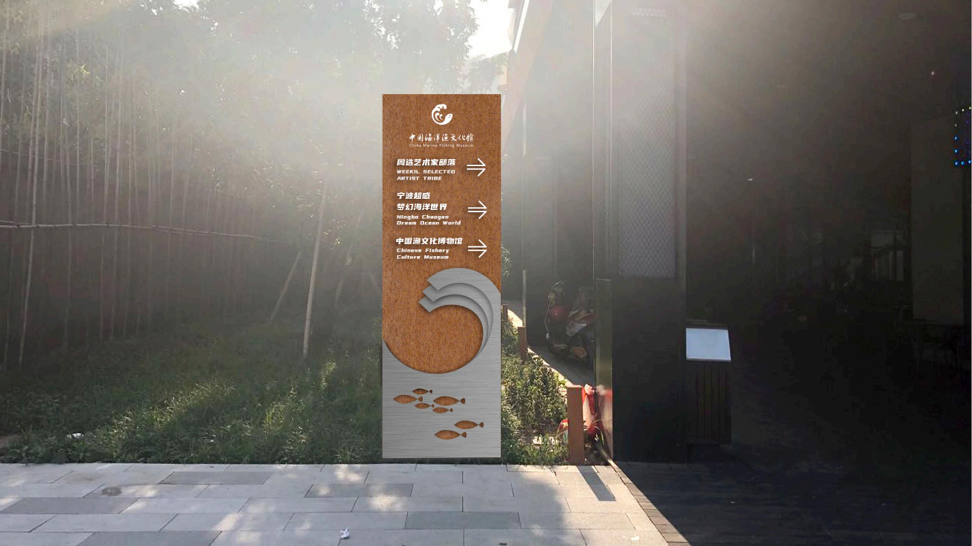 該館以歷史為脈絡(luò),部分還原了漁村舊貌,運(yùn)用AR、裸眼3D等技術(shù),展現(xiàn)了象山以海為生、與海共榮的海洋文化發(fā)展歷程和我國海洋漁文化的多樣性和豐富性。同時(shí),中國海洋漁文化館充分利用舊廠區(qū)空間,建設(shè)了城市會(huì)客廳、文創(chuàng)非遺孵化區(qū)等項(xiàng)目。我們團(tuán)隊(duì)將導(dǎo)視設(shè)計(jì)以漁文化為切入點(diǎn)進(jìn)行。