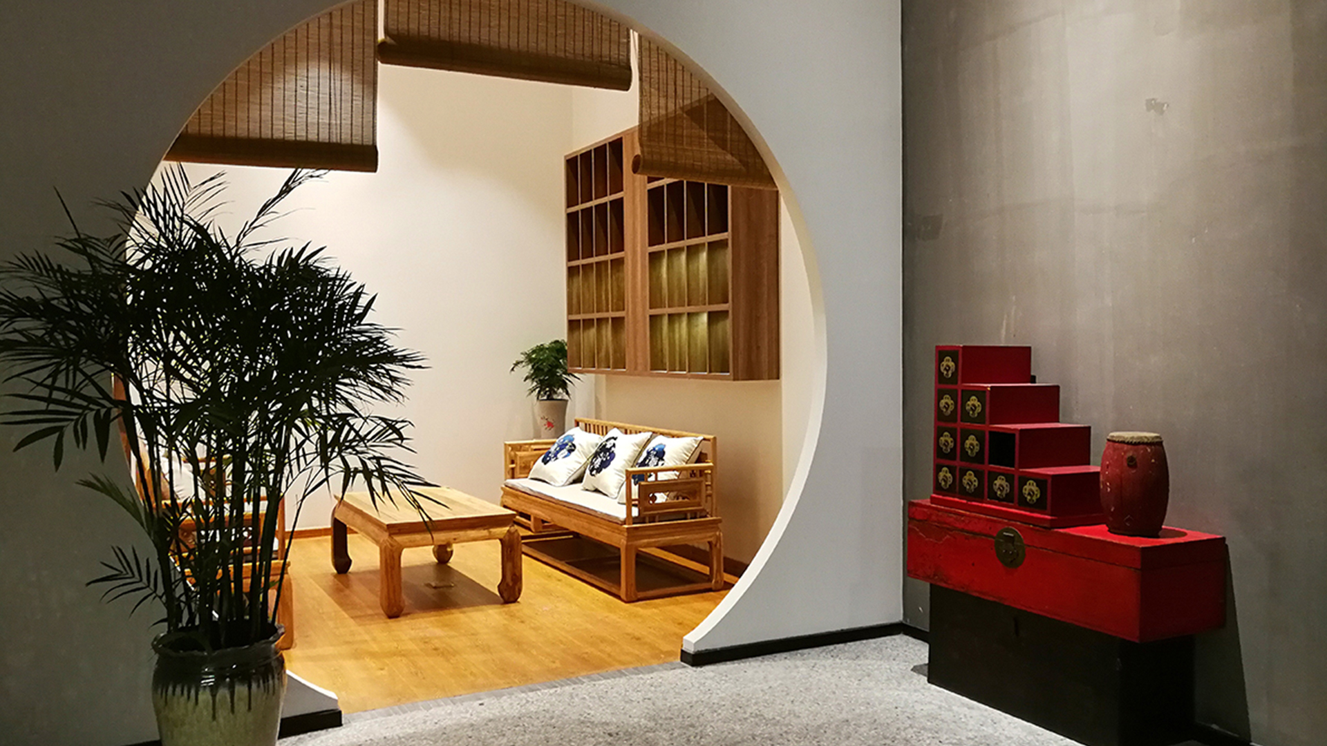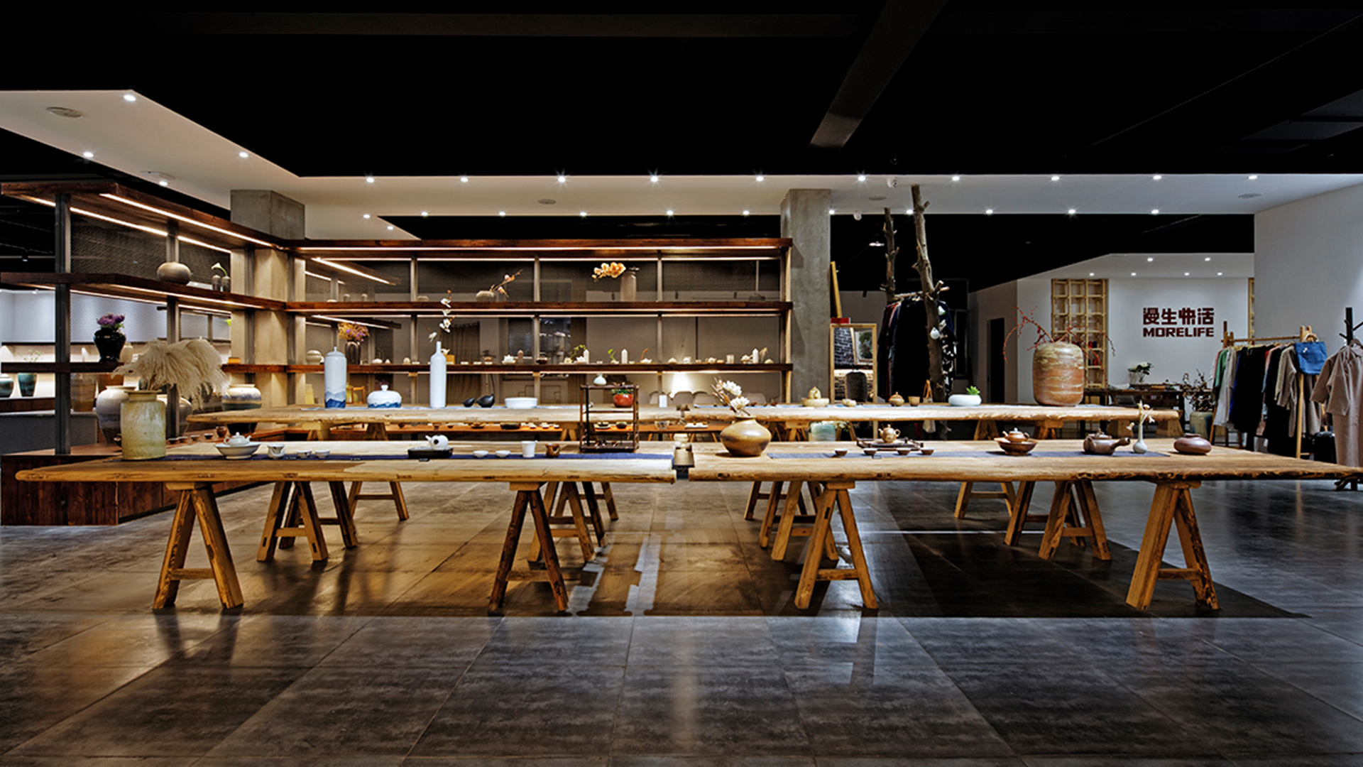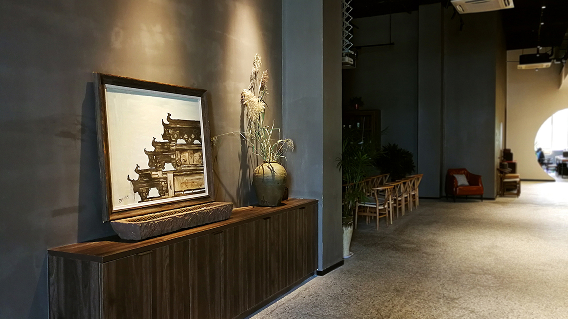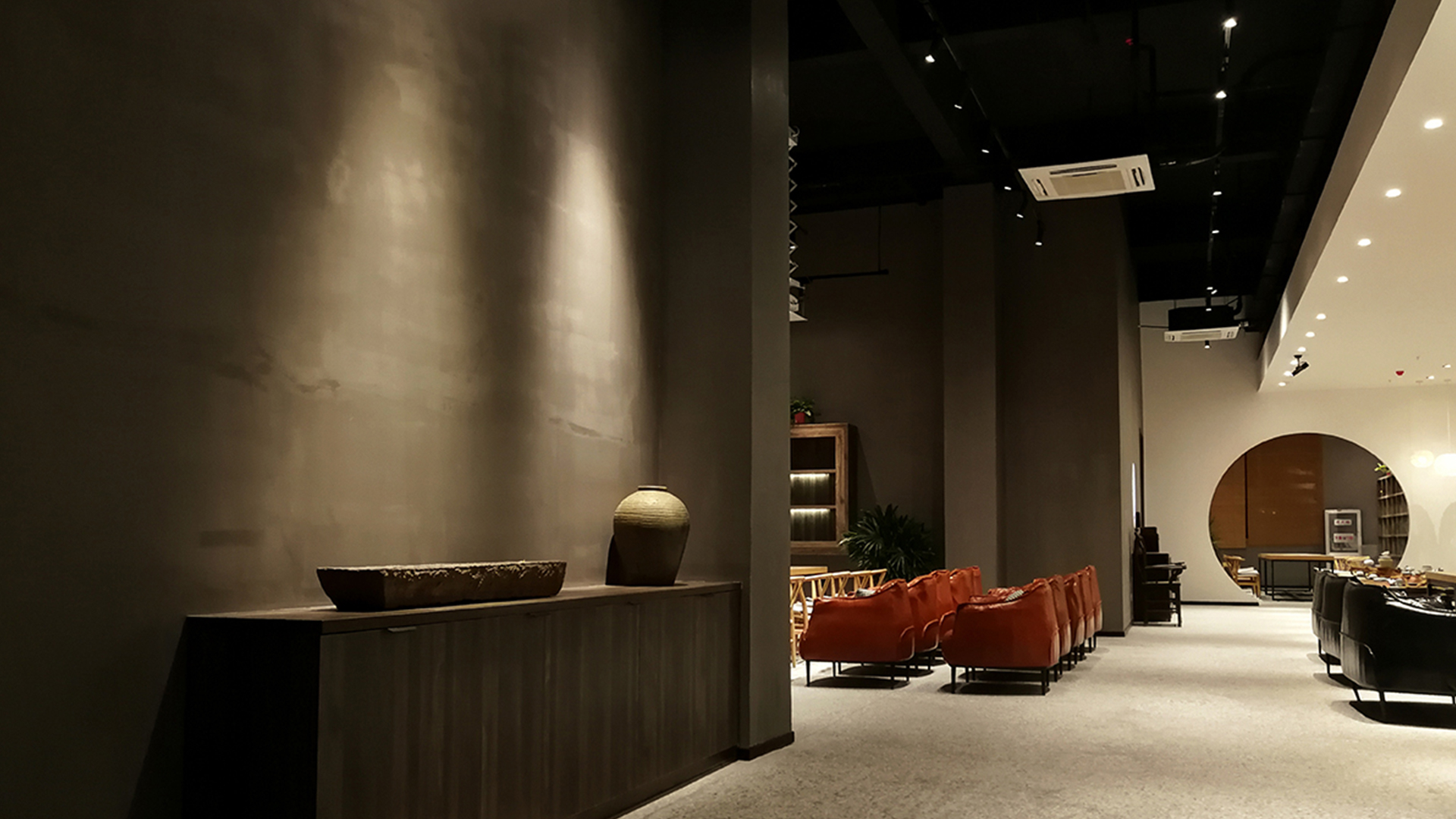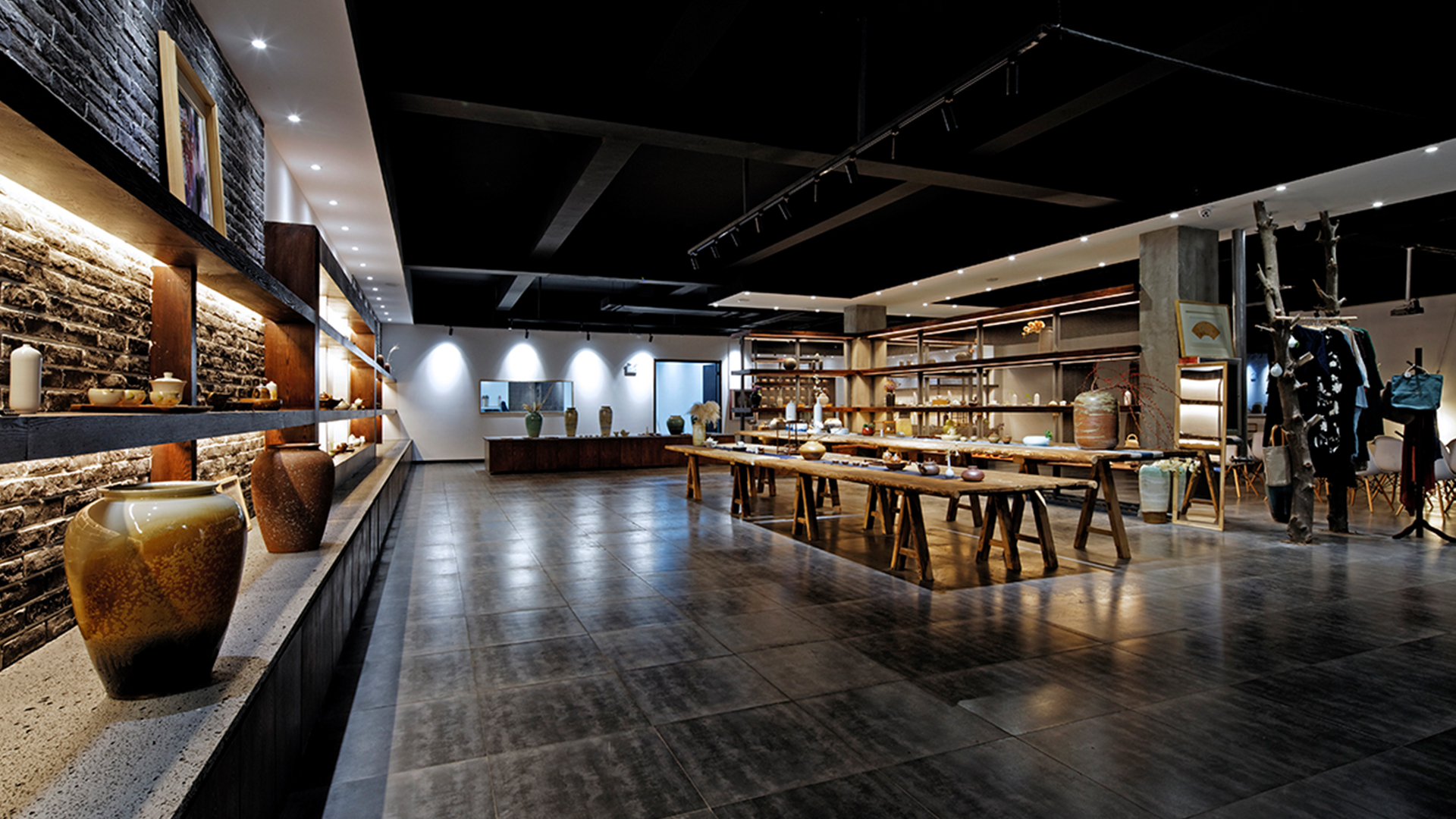 不爭論,不辯解,不過分堅持,讓本性自然釋放,也許有一天我們還會走向自己的反面。如果說平衡是世界的本來面貌,那么節(jié)制就是自我的修行。在欲望似乎沒有盡頭的今天,節(jié)制便顯得彌足珍貴。此項目運中江南園林中曲徑通幽之形,設(shè)計在方寸之間強化了藝術(shù)瓷器的雅致特別,進入后為一個集展示、零售、體驗及咖啡的綜合空間。一扇木門、一個櫥窗、一個景窗、一個圓形門廊,以多樣含蓄的方式與藝術(shù)對話。