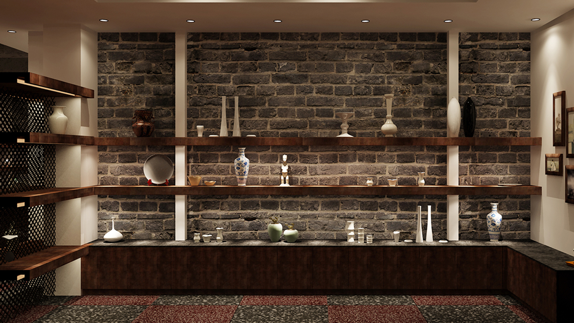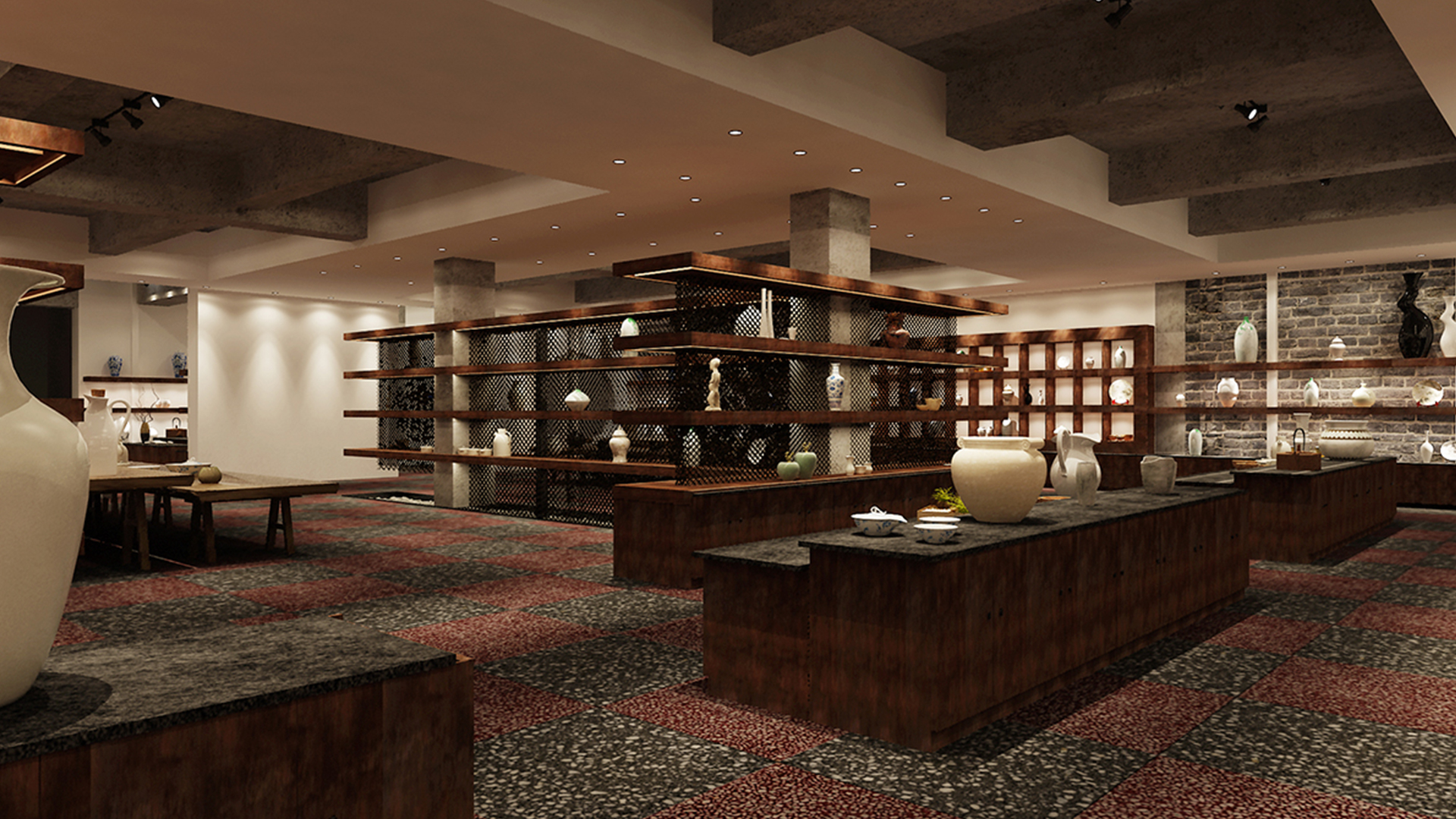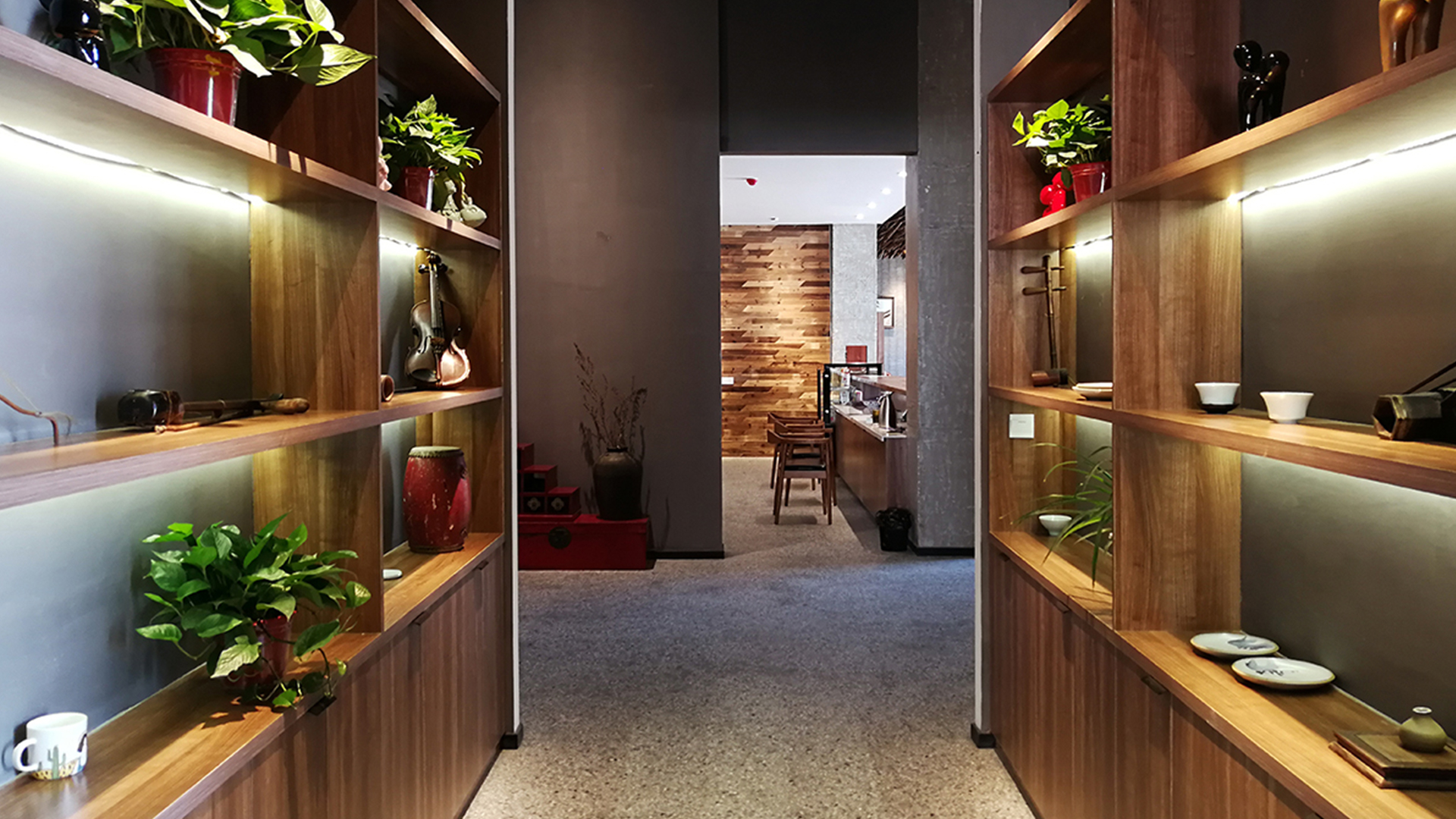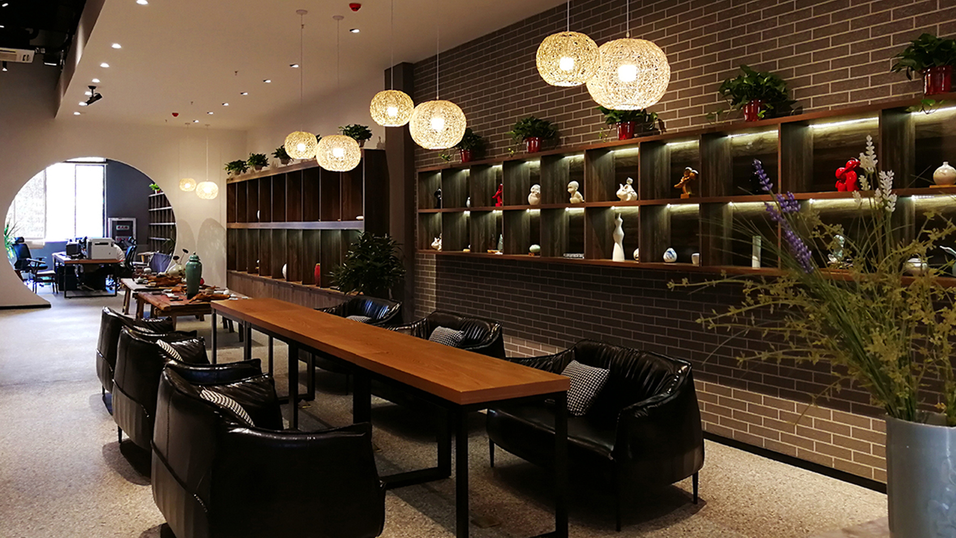 不爭論,不辯解,不過分堅持,讓本性自然釋放,也許有一天我們還會走向自己的反面。如果說平衡是世界的本來面貌,那么節(jié)制就是自我的修行。在欲望似乎沒有盡頭的今天,節(jié)制便顯得彌足珍貴。此項目運中江南園林中曲徑通幽之形,設(shè)計在方寸之間強化了藝術(shù)瓷器的雅致特別,進入后為一個集展示、零售、體驗及咖啡的綜合空間。一扇木門、一個櫥窗、一個景窗、一個圓形門廊,以多樣含蓄的方式與藝術(shù)對話。