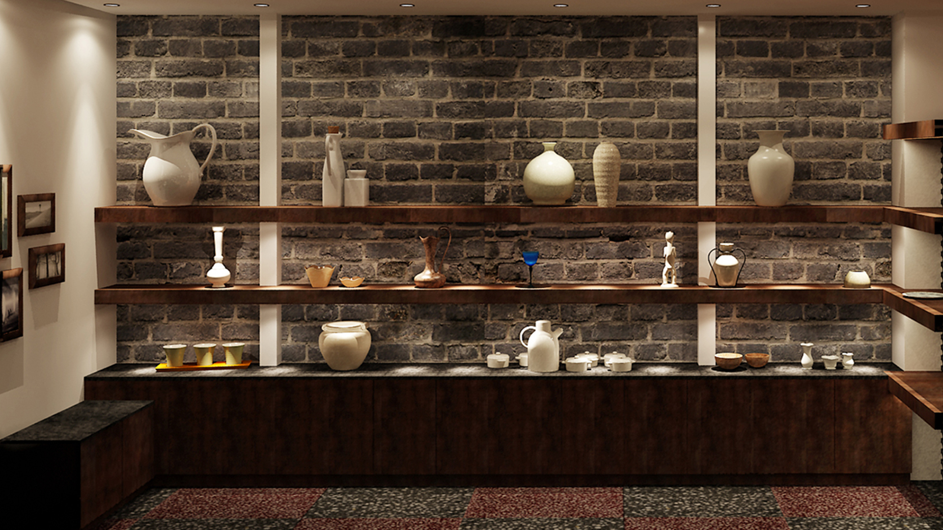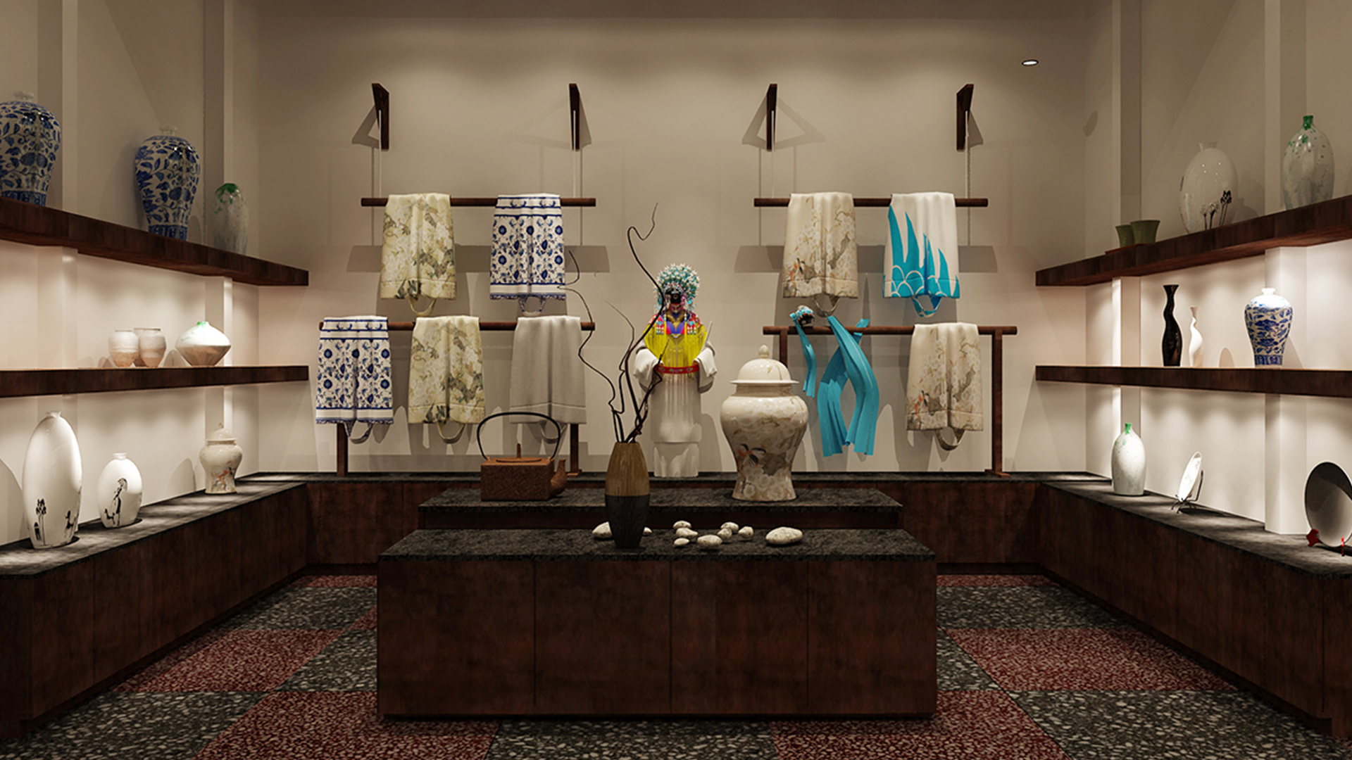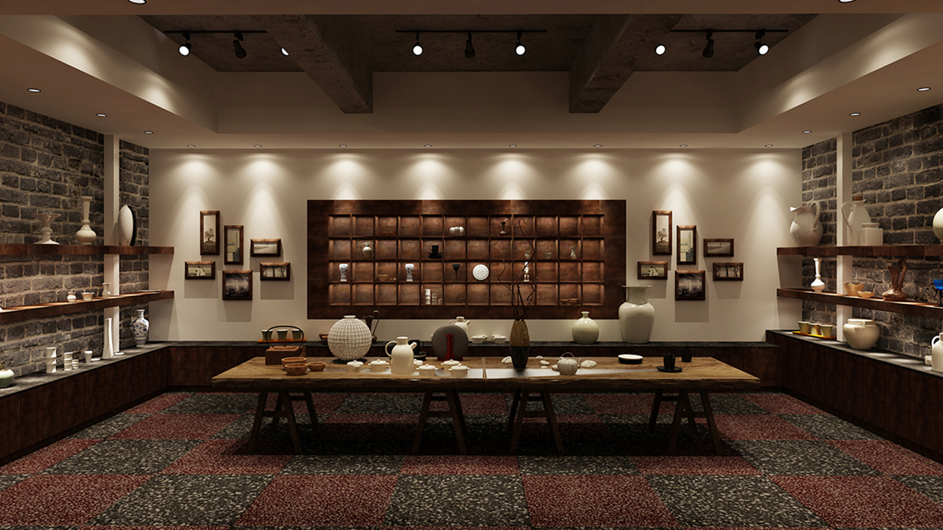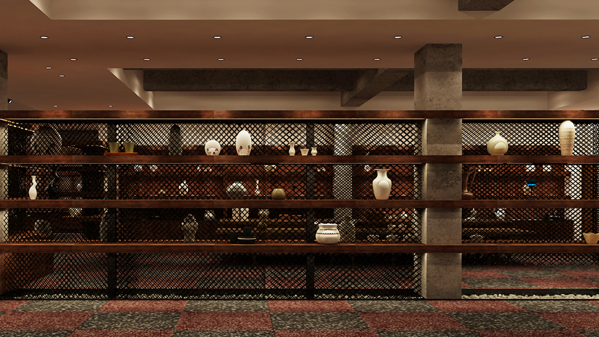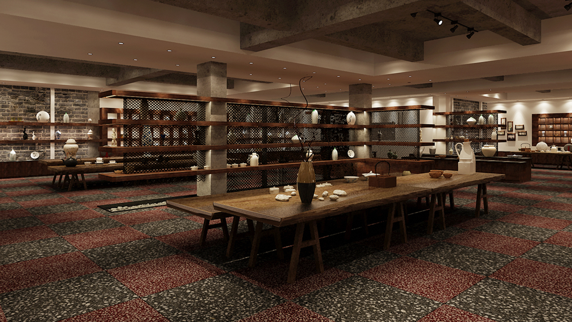 不爭論,不辯解,不過分堅持,讓本性自然釋放,也許有一天我們還會走向自己的反面。如果說平衡是世界的本來面貌,那么節(jié)制就是自我的修行。在欲望似乎沒有盡頭的今天,節(jié)制便顯得彌足珍貴。此項目運中江南園林中曲徑通幽之形,設(shè)計在方寸之間強化了藝術(shù)瓷器的雅致特別,進入后為一個集展示、零售、體驗及咖啡的綜合空間。一扇木門、一個櫥窗、一個景窗、一個圓形門廊,以多樣含蓄的方式與藝術(shù)對話。