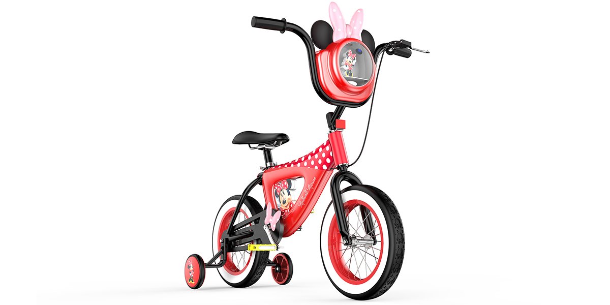 迪士尼是孩子們游玩的勝地,是孩子心目中的童話世界。這里一草一木都充滿著童趣。孩子喜歡的動(dòng)漫人物也都在這里,其中米妮老鼠是一個(gè)非常受歡迎的角色,我們將通過這一廣受兒童喜愛的IP形象融入此次兒童自行車的設(shè)計(jì)中,給孩子們?cè)诔砷L(zhǎng)的過程中,帶來更多的童趣與開心的回憶。